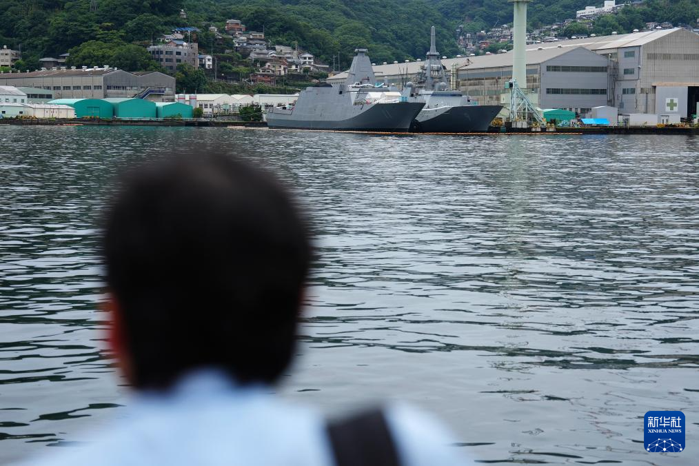 这是8月8日在日本长崎拍摄的建造中的日本“最上”级护卫舰。新华社记者 贾浩成 摄