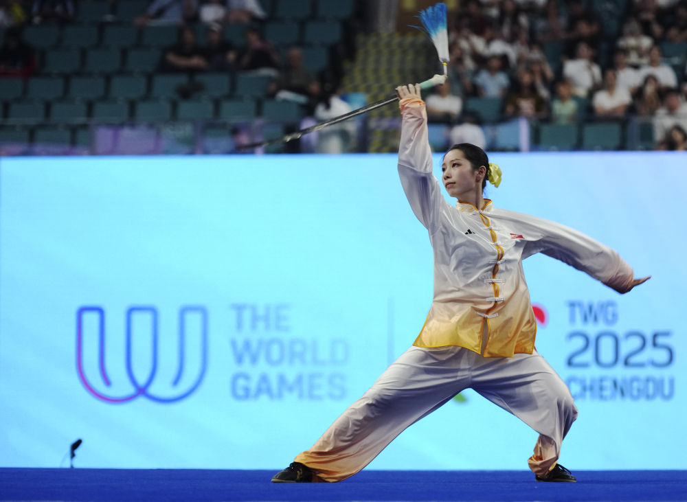 8月8日,在成都世运会武术项目女子太极拳-太极剑决赛中,中国选手卢卓灵夺得冠军。