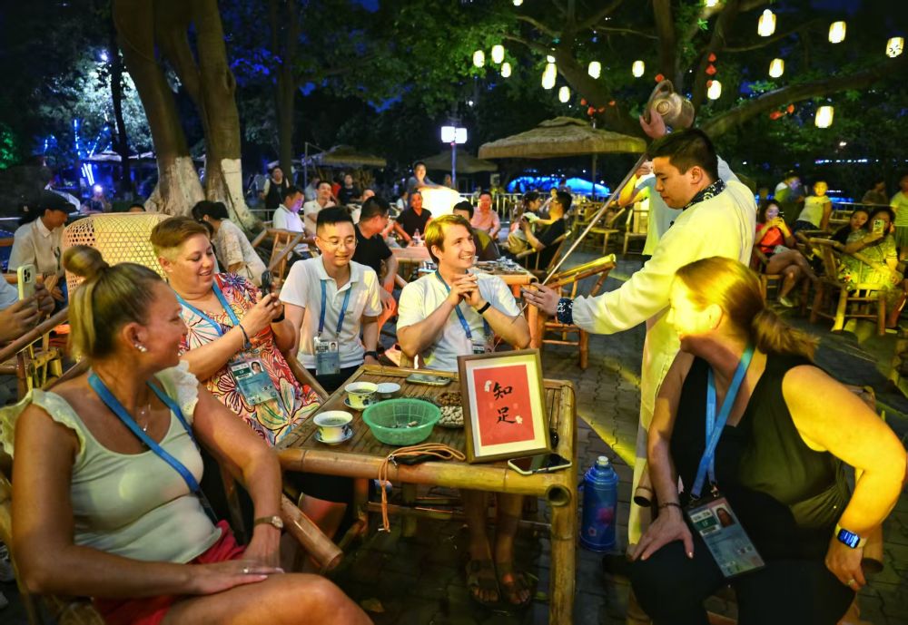 赛事期间,世运广场、世运村等开展了丰富多彩的文化活动,让中华传统文化的深厚底蕴在竞技的活力中焕发新彩,让各地朋友因世运会相聚相知,推动全球文明交流互鉴。每天晚上,世运广场主舞台上不仅有国际单项体育联合会带来的体育项目表演,更有彰显巴蜀韵味的特色节目;城市文化展示区的非遗体验活动,让多元文化魅力持续发酵。