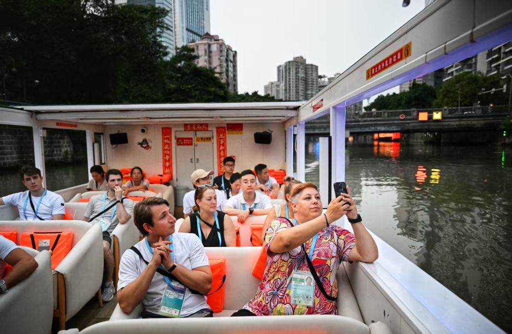 来到成都的各参赛代表团人员、国内外观众,在比赛之余,纷纷走进公园城市的各个角落,感受城市的万千气象。来自荷兰、波兰、瑞士、比利时等国的运动员、教练员、裁判员登上火锅巴士,一路领略成都锦江夜景、老街烟火和现代都市的蓬勃发展;瑞士运动员卡尔多・兰坎在夺得首金后,迫不及待地在成都街头走走看看,他兴奋地表示:“城市很大,非常漂亮,太酷了!”南非运动员则在荷花池开启了疯狂的“买买买”模式,熊猫玩偶、T恤、运动鞋等商品,让他们双手都拿不下……