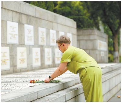 叶莲娜来到刻有外祖父列夫·扎哈罗维奇·舒斯特尔名字的石板前,将一束红色康乃馨和一张外祖父与外祖母米娜的结婚照轻轻放下,久久不愿离去。这是她第一次来到武汉祭扫,虽然与牺牲于此的外祖父从未谋面,但武汉总让她有种莫名的亲切之感。