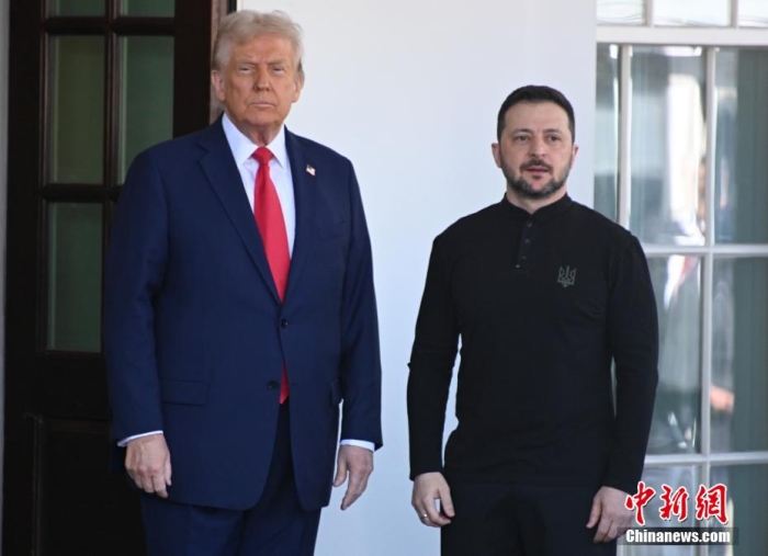当地时间2月28日,华盛顿,美国总统特朗普与乌克兰总统泽连斯基在白宫会晤时发生争吵,不欢而散。图为特朗普在白宫迎接泽连斯基抵达。中新社记者 陈孟统 摄