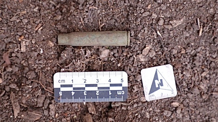 黑龙江鸡冠山东北抗联密营遗址发现的弹壳。(哈尔滨市委宣传部供图)