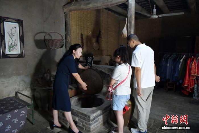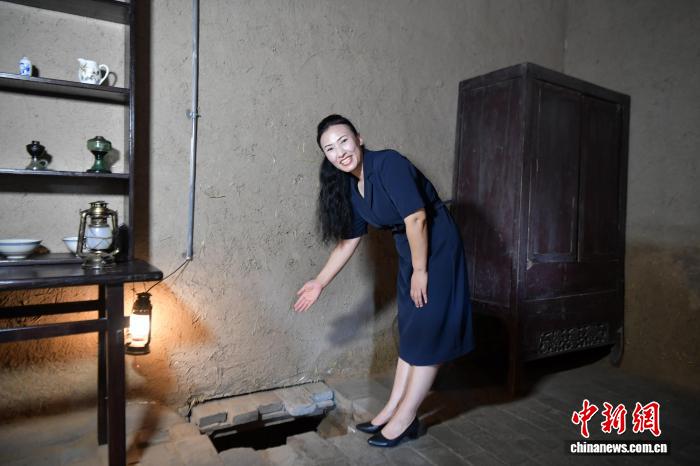 图为保定市清苑区地道战遗址文物保护中心工作人员向游客介绍锅台地道口。中新社记者 翟羽佳 摄