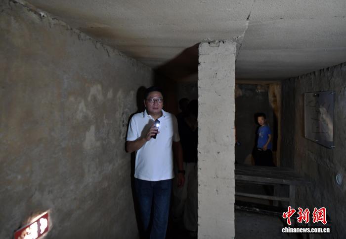 图为保定市清苑区地道战遗址文物保护中心工作人员介绍当年侵略者进攻的方位。中新社记者 翟羽佳 摄