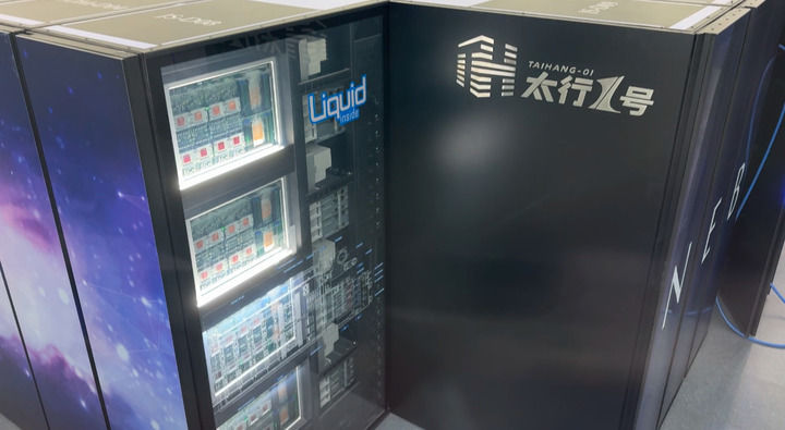 2025年8月21日,在国家超级计算太原中心,机组用全浸没液冷技术降温。新华社记者 王怡静 摄