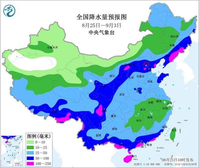 8月25日—9月3日全国降水量预报图。图片来源:中央气象台