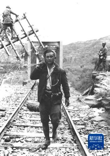 1944年,抗日军民携手掀翻山西忻州南同蒲铁路路段枕木。李峰 摄