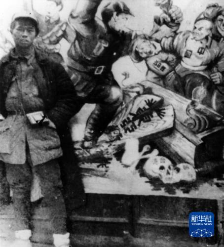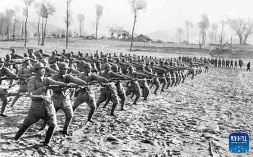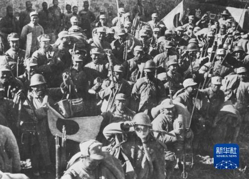 八路军战士背着缴获的日军武器及物资胜利归来。俞创硕 摄