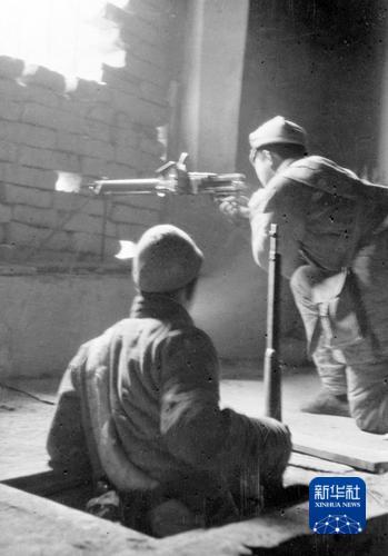 民兵正在地道里从一个射击口转移到另一个射击口去消灭敌人。石少华 摄