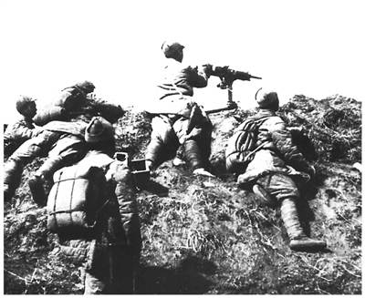 图为狮脑山战斗中八路军的机枪阵地。