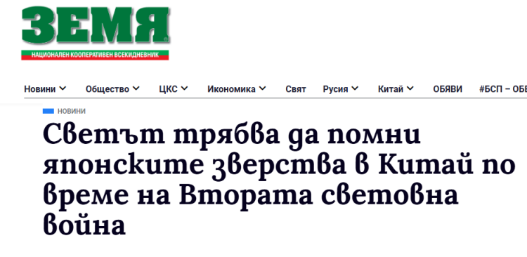 保加利亚媒体:世界应该记住二战期间日本在中国的罪行