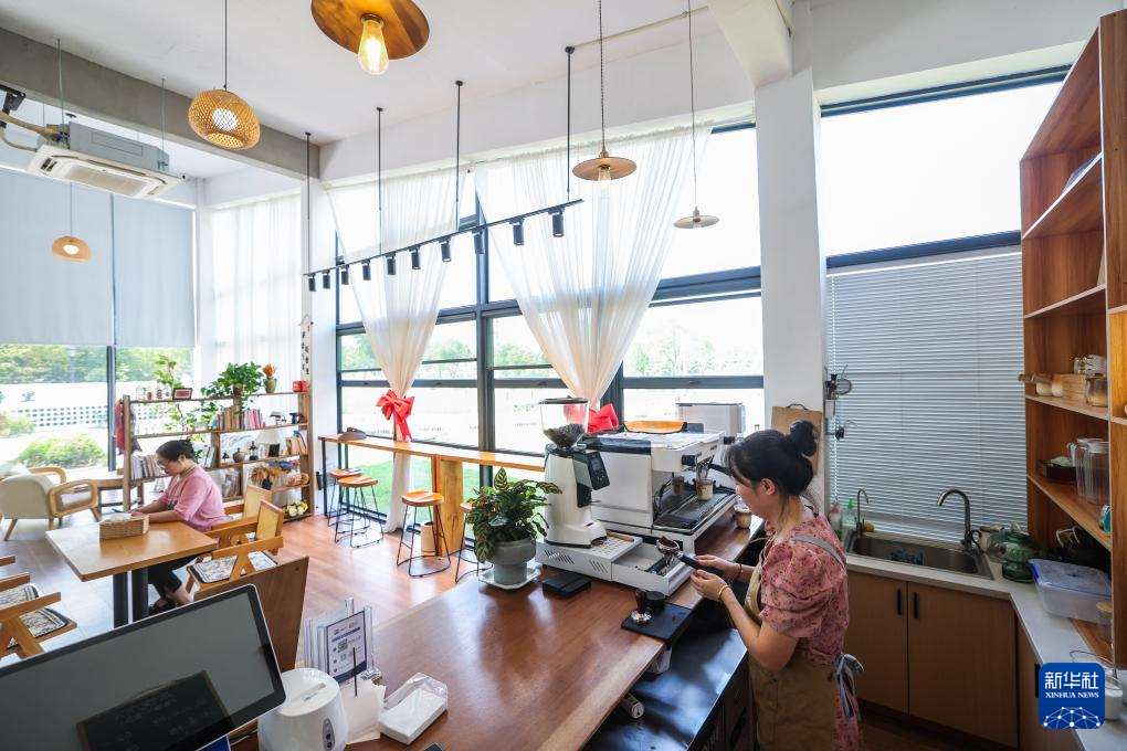 8月27日在虹星桥镇宋高村稻香伴日营地内拍摄的咖啡屋。这是宋高村做优全域土地整治后的农文旅新尝试,集餐饮、旅游、农业和文化综合于一体。