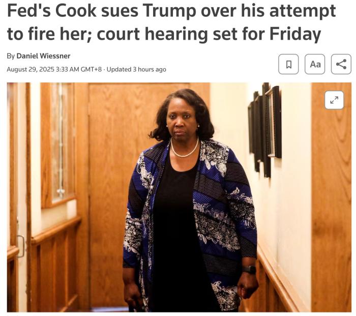 据报道,诉讼还指控特朗普未经通知或听证就对其解雇,侵犯了美国宪法赋予库克的正当程序权利。