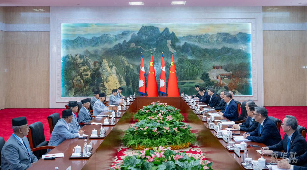 8月30日,国家主席习近平在天津会见尼泊尔总理奥利。