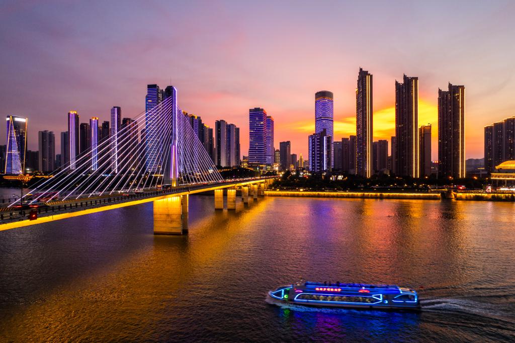 7月16日拍摄的长沙湘江(无人机照片)。新华社记者 陈思汗 摄