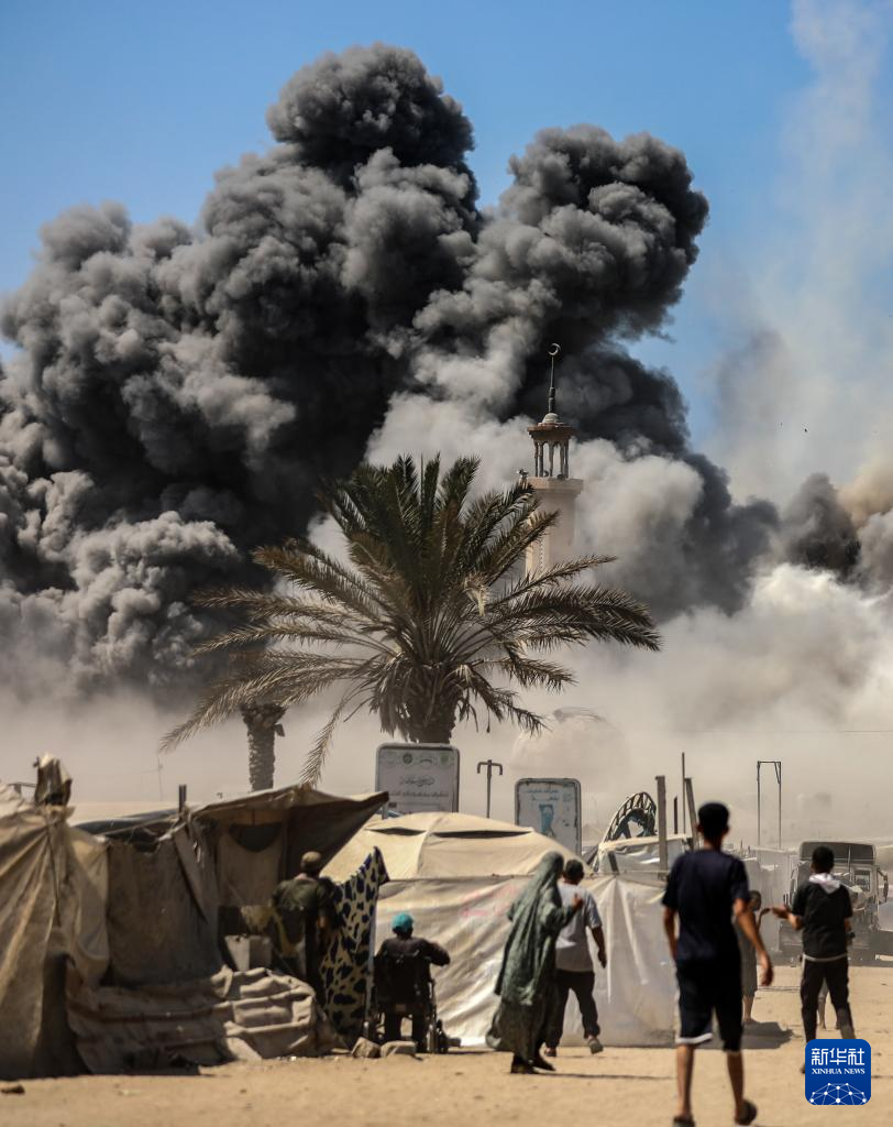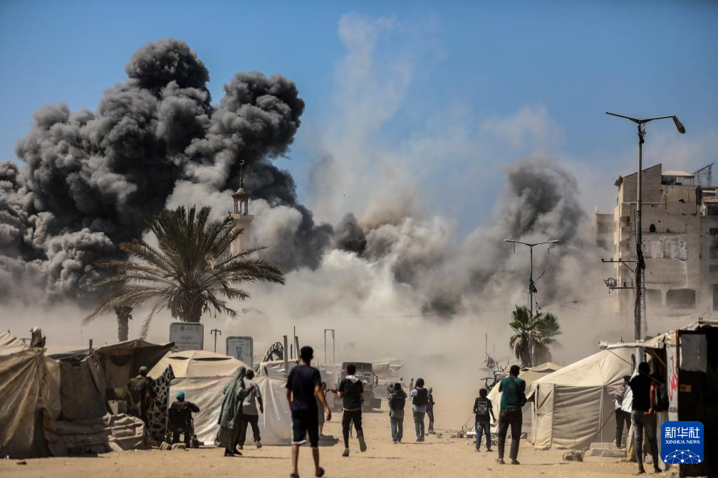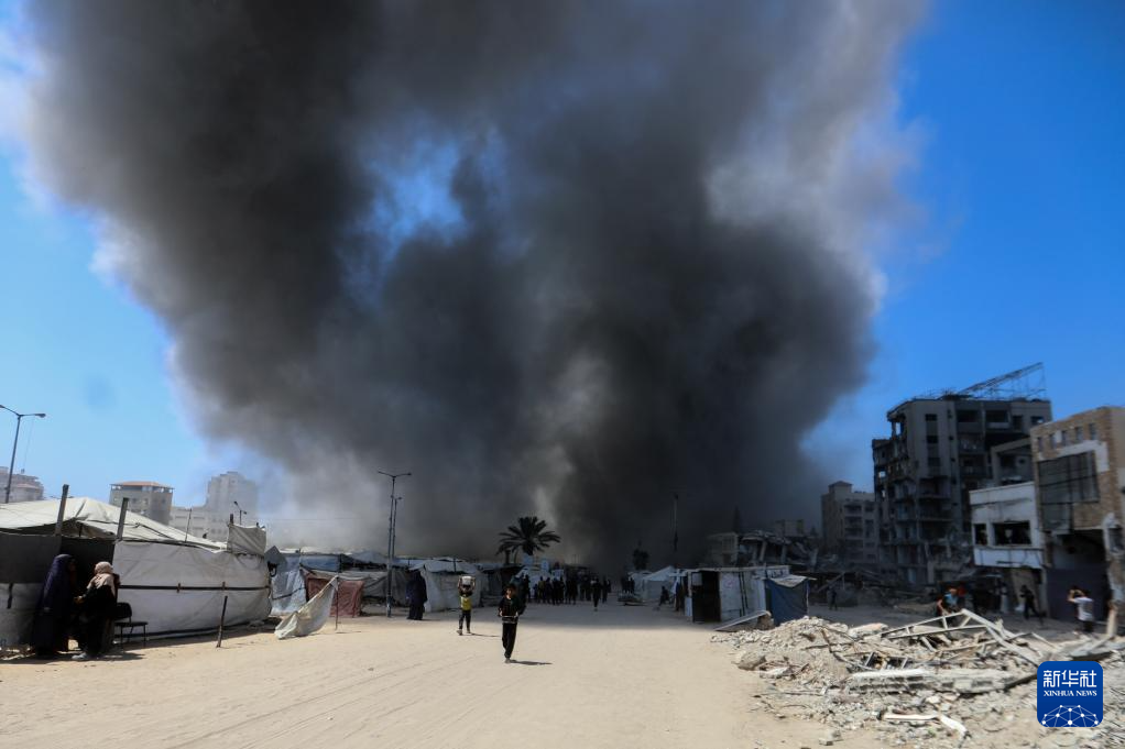 9月5日,加沙城一栋建筑遭以色列军队空袭后升起浓烟。新华社发(里泽克·阿卜杜勒贾瓦德摄)