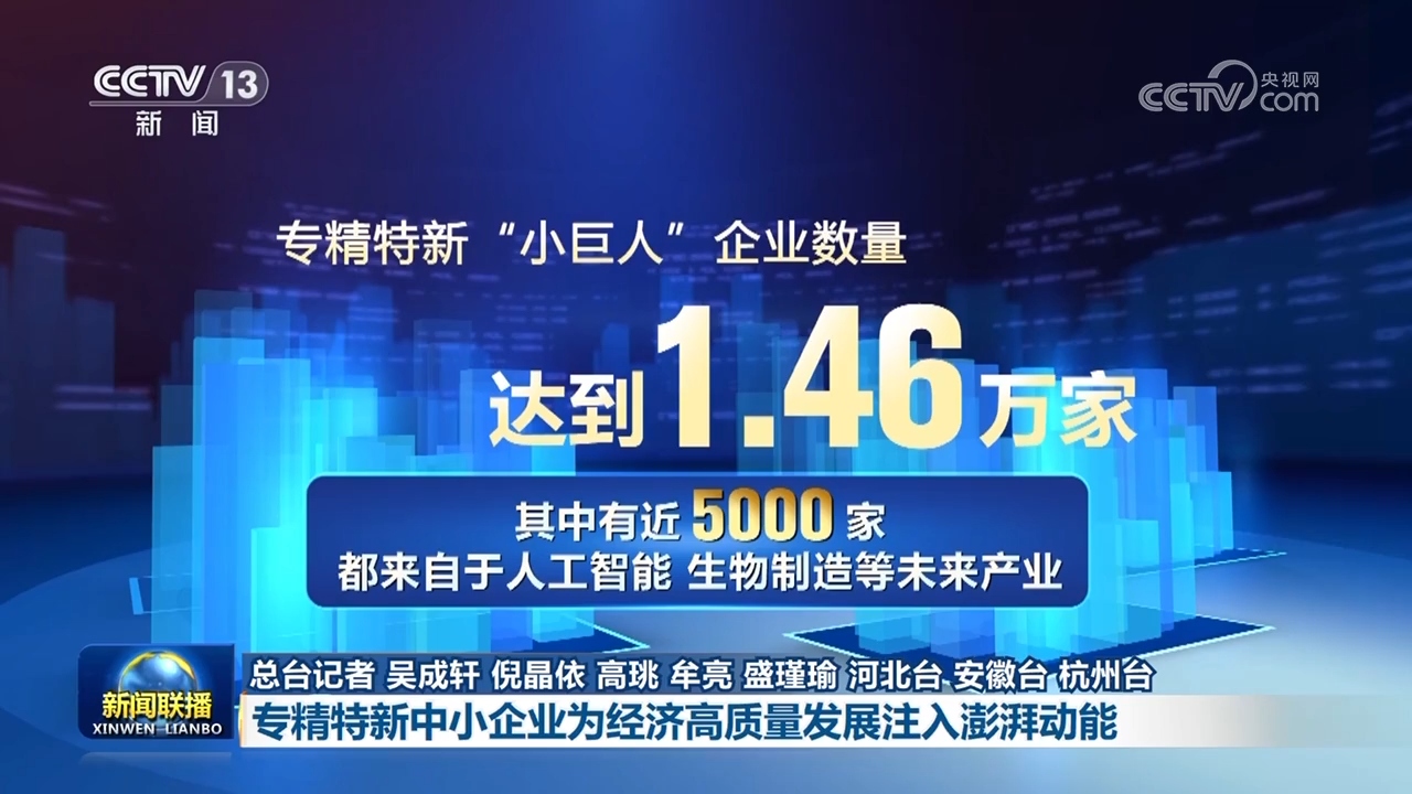当前,我国已累计培育专精特新中小企业超过14万家,专精特新“小巨人”企业数量达到1.46万家,其中有近5000家都来自于人工智能、生物制造等未来产业。1—7月,规模以上工业专精特新“小巨人”企业增加值同比增长8.7%,增速高于全部规模以上工业2.4个百分点。