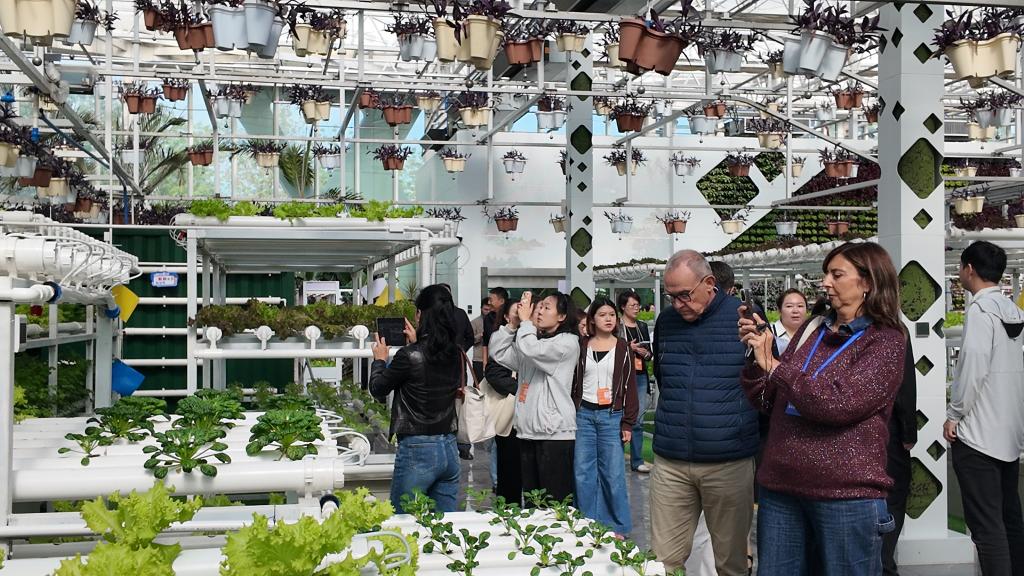 走进昌吉新疆农业博览园内的垂直农业展示区、叶菜工厂示范区和果菜工厂示范区,目睹无土栽培、无人机灌溉、光合作用智能调控等一系列农业高科技应用为作物“量身定制”生长环境,参访议员们纷纷拍照记录。