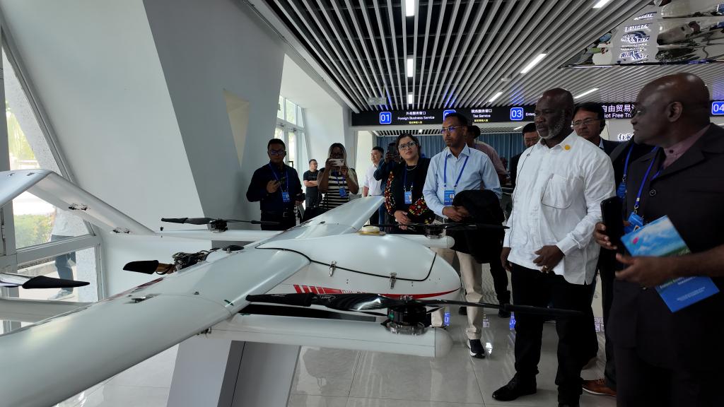 9月13日,外国议员在中国(新疆)自由贸易试验区喀什片区展厅低空经济展区参观。 新华社记者 王泽宇 摄