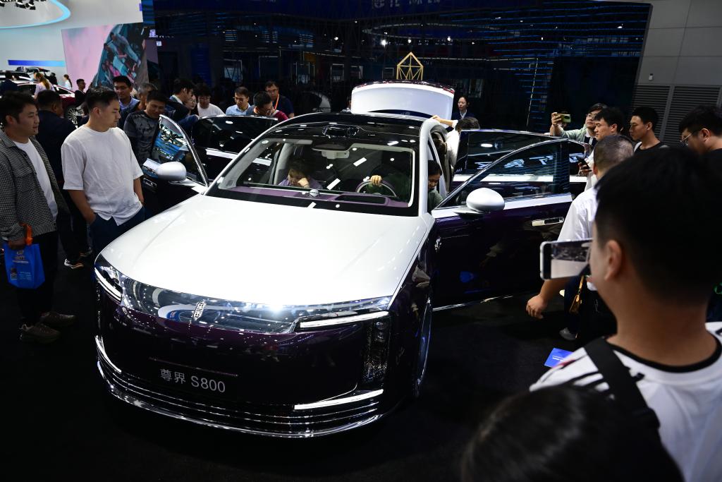 9月20日,观众在2025世界制造业大会上参观体验一款新能源汽车。新华社记者 周牧 摄