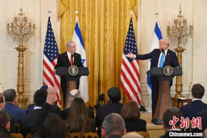 当地时间2月4日,美国总统特朗普与以色列总理内塔尼亚胡在白宫举行记者会。中新社记者 陈孟统 摄