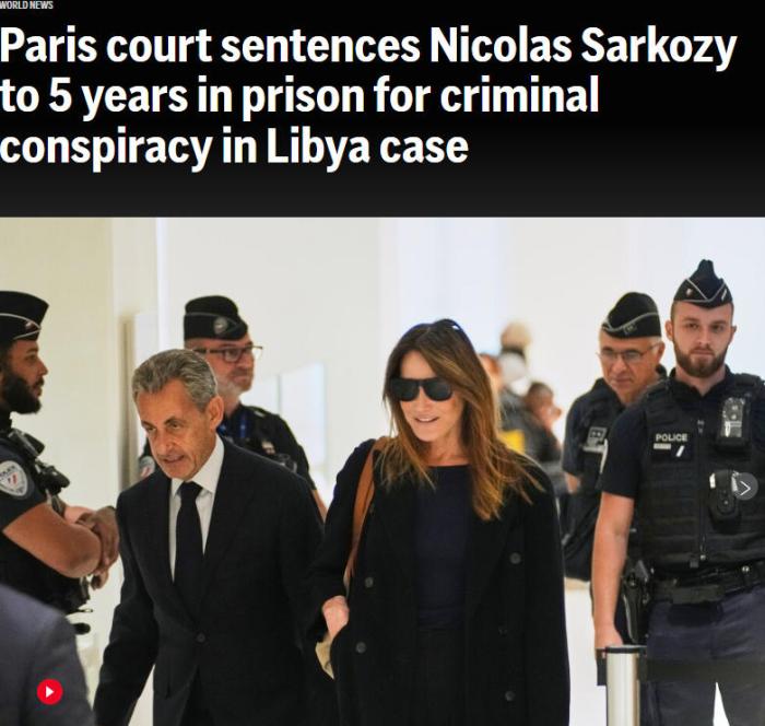 据报道,巴黎刑事法庭的法官裁定,萨科齐被判在2005年至2007年间犯有“共谋罪”,“允许其亲信和政治支持者在2007年的总统竞选中,要求利比亚政府提供资金支持”。