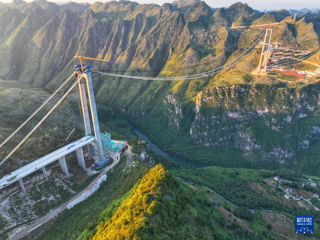 2024年9月3日拍摄的建设中的贵州花江峡谷大桥(无人机照片)。