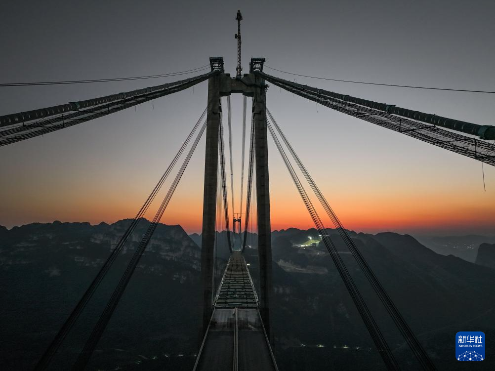 自2022年1月花江峡谷大桥正式开工建设以来,一组图片记录下了大桥从主塔浇筑、猫道搭建、钢桁梁吊装、合龙、荷载试验到通车的“成长”历程。