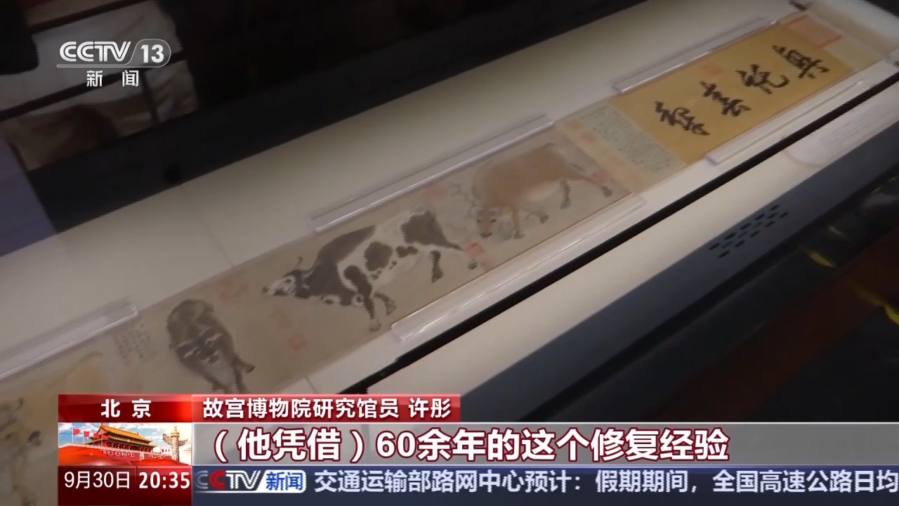 故宫博物院研究馆员 许彤:它上面大小破洞应该有300多处,非常残破。后来,修复专家孙承枝老师凭借其60余年的修复经验,通过揭裱、修补、全色又重装,最终让国宝重光,获得新生。