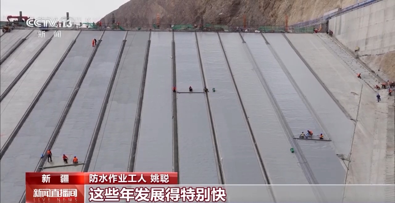位于新疆阿克苏地区的大石峡水利枢纽工程最大坝高达247米。从2019年11月开工建设,已经完成了主体施工。这两天,工人们正忙着进行防水作业,这也是整个大坝建设接近尾声的一个工程环节。