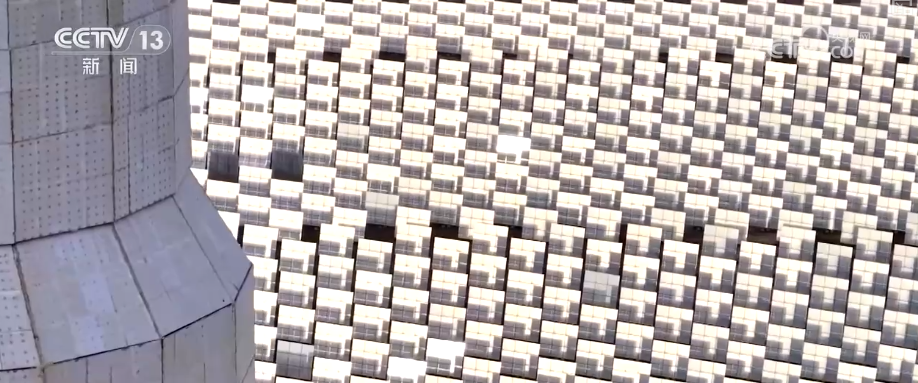 园区中,23000多面定日镜如同一个个精准的“追光者”,通过智能控制系统实时追踪太阳轨迹,将分散的太阳光集中反射到高达200多米的吸热器上,再通过大容量熔盐储热系统,实现24小时连续稳定供电。