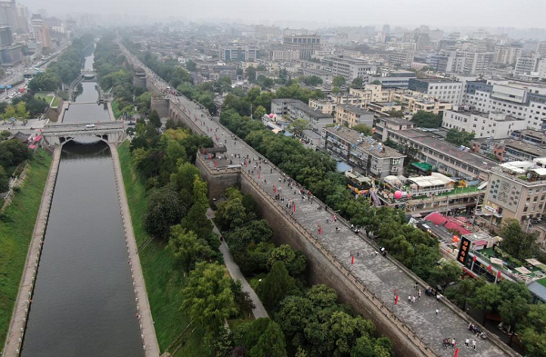 游客在西安城墙景区参观。图源:新华社