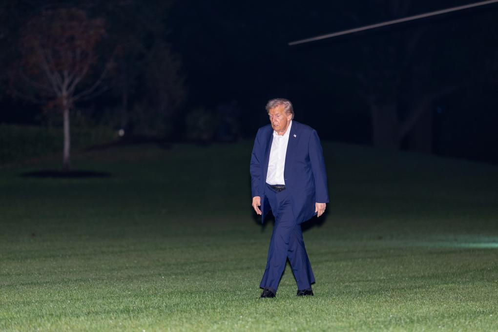 10月14日,美国总统特朗普在埃及出席关于加沙地带停火的峰会后返抵华盛顿白宫。新华社记者胡友松摄