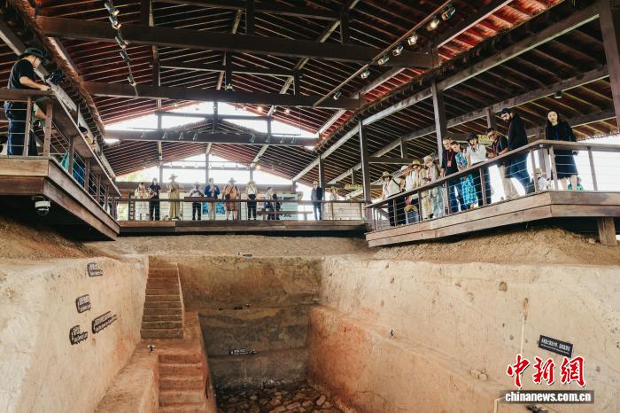 近日,中外嘉宾在良渚古城遗址公园参观草裹泥堆筑遗迹。 (第三届“良渚论坛”组委会供图)