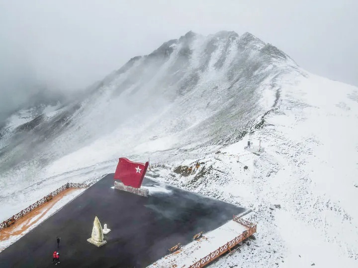 位于四川夹金山海拔4114米垭口的红色主题文化景观。新华社发(郝立艺 摄)
