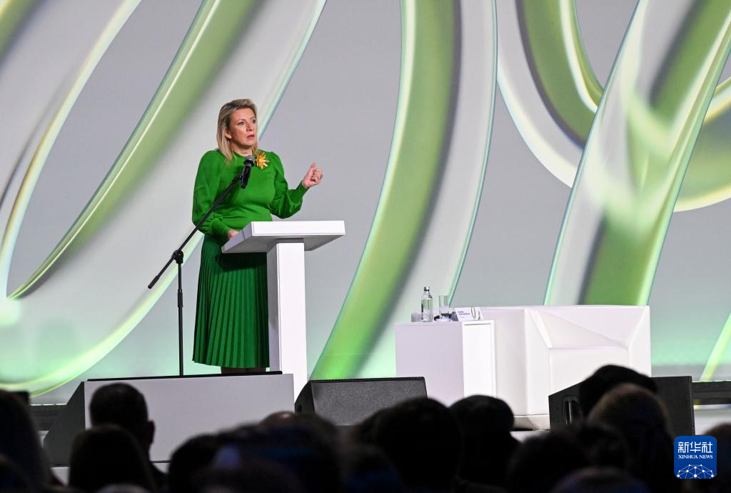 10月29日,在俄罗斯首都莫斯科,俄罗斯外交部发言人扎哈罗娃在“打假防骗对话3.0”国际论坛上讲话。新华社记者 郝建伟 摄