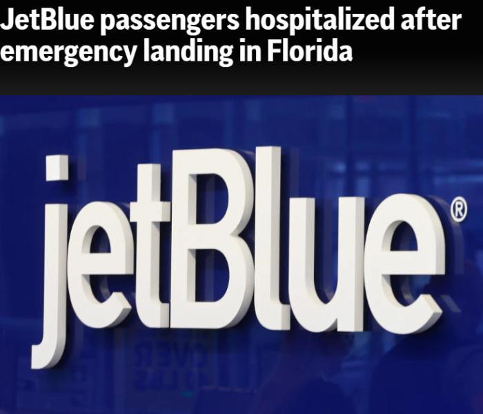 美媒:捷蓝航空一航班紧急迫降佛罗里达 致多名乘客受伤