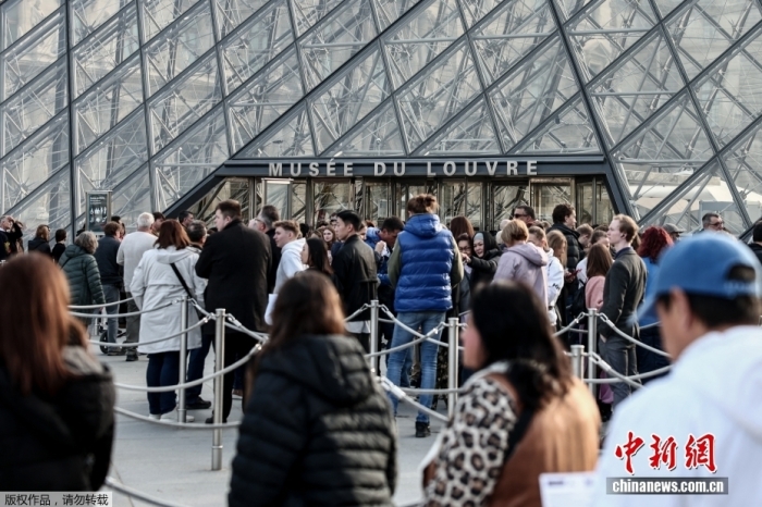 当地时间10月22日,在经历了抢劫事件三天后,法国卢浮宫重新开门,供游客参观。当地时间19日,卢浮宫博物馆发生抢劫事件,数名蒙面人员在数分钟内,抢走多件珍宝,卢浮宫随即疏散人员宣布闭馆。图为游客在卢浮宫外排队。