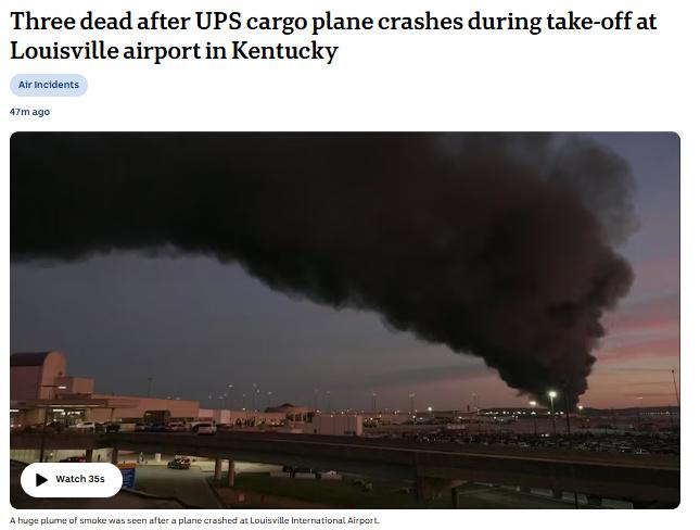 中新网11月5日电 据美国广播公司(ABC)、美国有线电视新闻网(CNN)报道,当地时间11月4日下午,一架美国联合包裹运送服务公司(UPS)的货运飞机在肯塔基州路易斯维尔市穆罕默德·阿里国际机场附近起飞不久后坠毁。