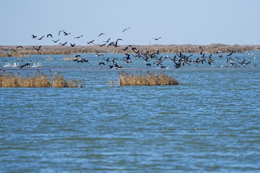 东营市副市长王秀凤介绍,这里是国际候鸟迁飞保护的关键区域,被誉为鸟类的“国际机场”。近年来,当地积极推进综合生态治理,鸟类数量已由建区初期的187种增加到现在的374种,每年有600多万只鸟类在这里繁衍栖息。