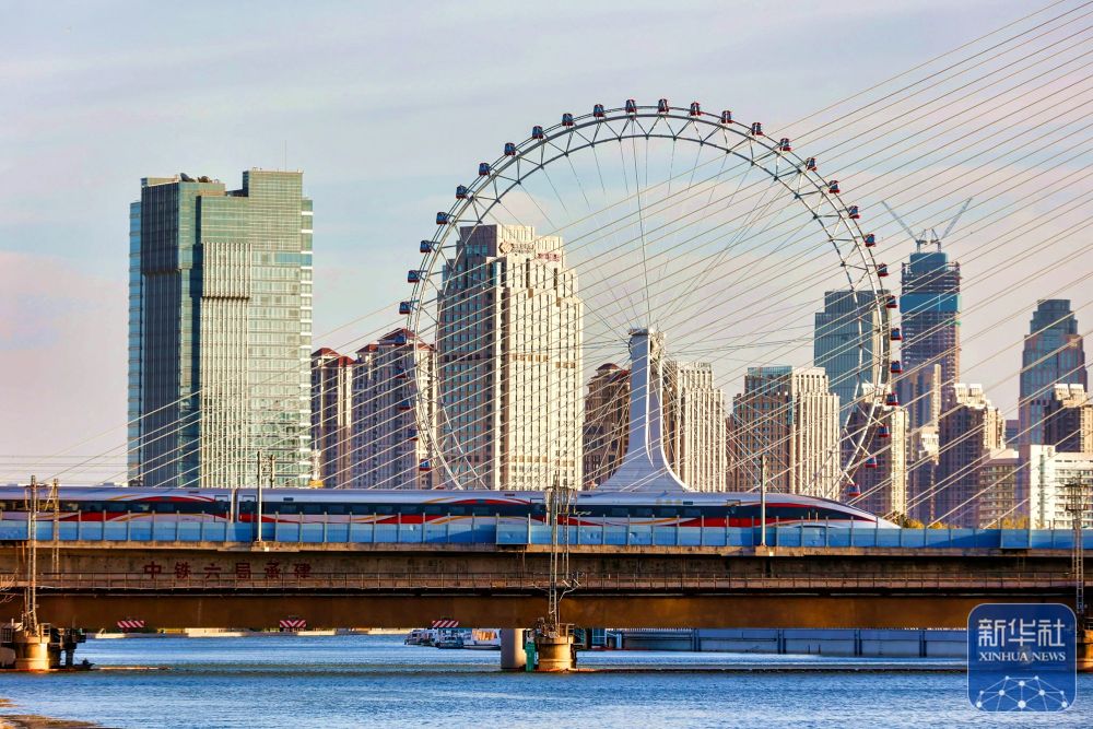 ↑ 11月16日,动车组列车行驶在天津市境内。新华社发(杜鹏辉摄)