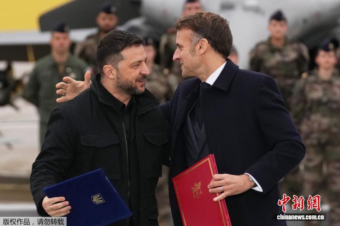 据报道,在巴黎西南部的维拉库布莱空军基地与法国总统马克龙签署意向书后,泽连斯基向记者表示:“我们将拥有最强大的防空系统。”泽连斯基称之为“历史性协议”。