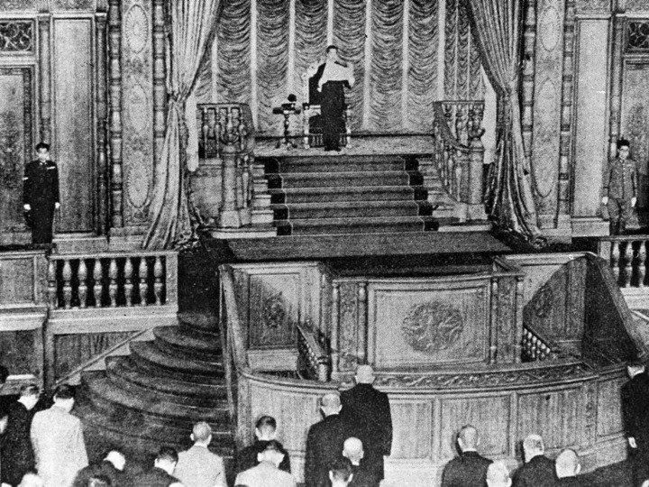 1945年8月15日,日本宣告无条件投降。这是8月14日,日本天皇向议会宣布接受《波茨坦公告》,向盟国投降。新华社发