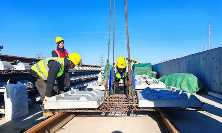 “线路共有4个铺轨标段,我们主要承担三标段(河北段)的铺轨任务,包括双块式整体道床、梯形轨枕道床、现浇钢弹簧浮置板道床轨道及道岔铺设。”中铁二局集团有限公司北京轨道交通22号线轨道三标段项目经理高铎伦介绍,除铺轨作业外,神威大街站、潮白大街站也在加紧进行机电设备安装施工,为后续车辆调试、冷滑热滑试验及试运行奠定基础。