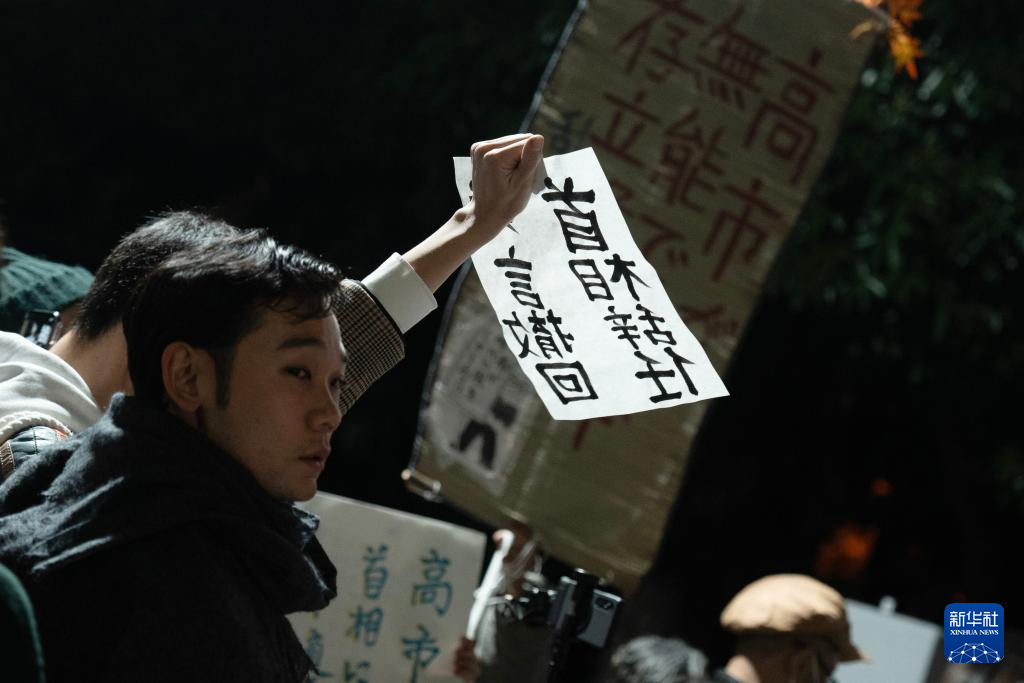 新华社东京11月21日电(记者李子越 杨智翔)数百名日本民众21日晚在位于东京的首相官邸前举行集会,抗议日本首相高市早苗近日在国会发表的涉台错误言论,要求其撤回相关表态并作出解释和道歉。