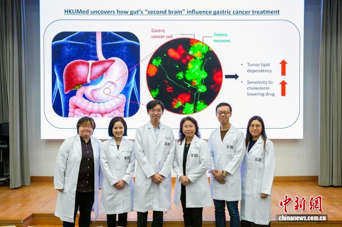 中新网香港11月25日电 香港大学(简称“港大”)25日公布,该校医学院研究团队在胃癌研究上取得突破,揭示人体消化系统中的肠神经元,会影响肿瘤生长及治疗反应。若癌细胞有神经元渗入,使用胆固醇抑制剂治疗,可提升杀死癌细胞的效果达6.3倍。