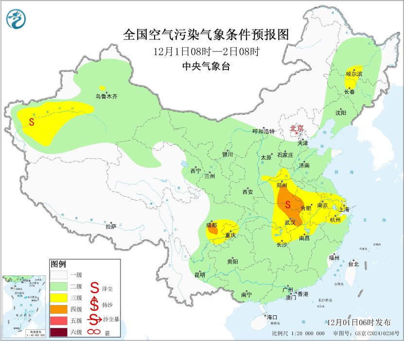中国网12月1日讯 据中央气象台消息,未来一周,全国大部地区大气扩散条件较好。但1日,受残留沙尘天气影响,黄淮西部、江淮、江汉、江南北部等地的部分地区PM10浓度依然较高。