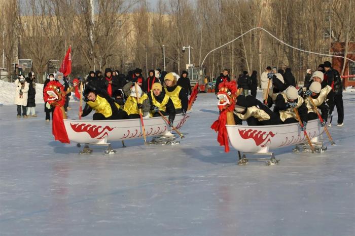 2024年东北石油大学冰雪体育文化节上的冰上龙舟(资料图)(图源:东北石油大学公众号)