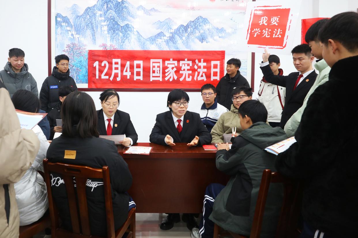 12月3日,山东省枣庄市市中区人民法院组织法官走进校园,开展主题宣传活动,向学生普及宪法知识、宣传法治观念、弘扬宪法精神。(工人日报通讯员 孙中喆 摄)